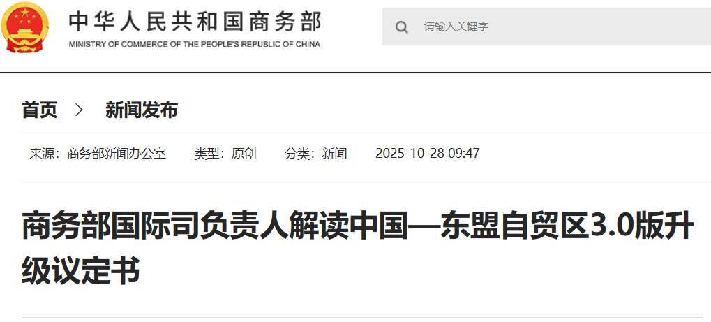 • 10-292025 商務部:中國與東盟首次對綠色經濟、新能源、清潔能源、可持續金融、綠色技能等作出明確定義